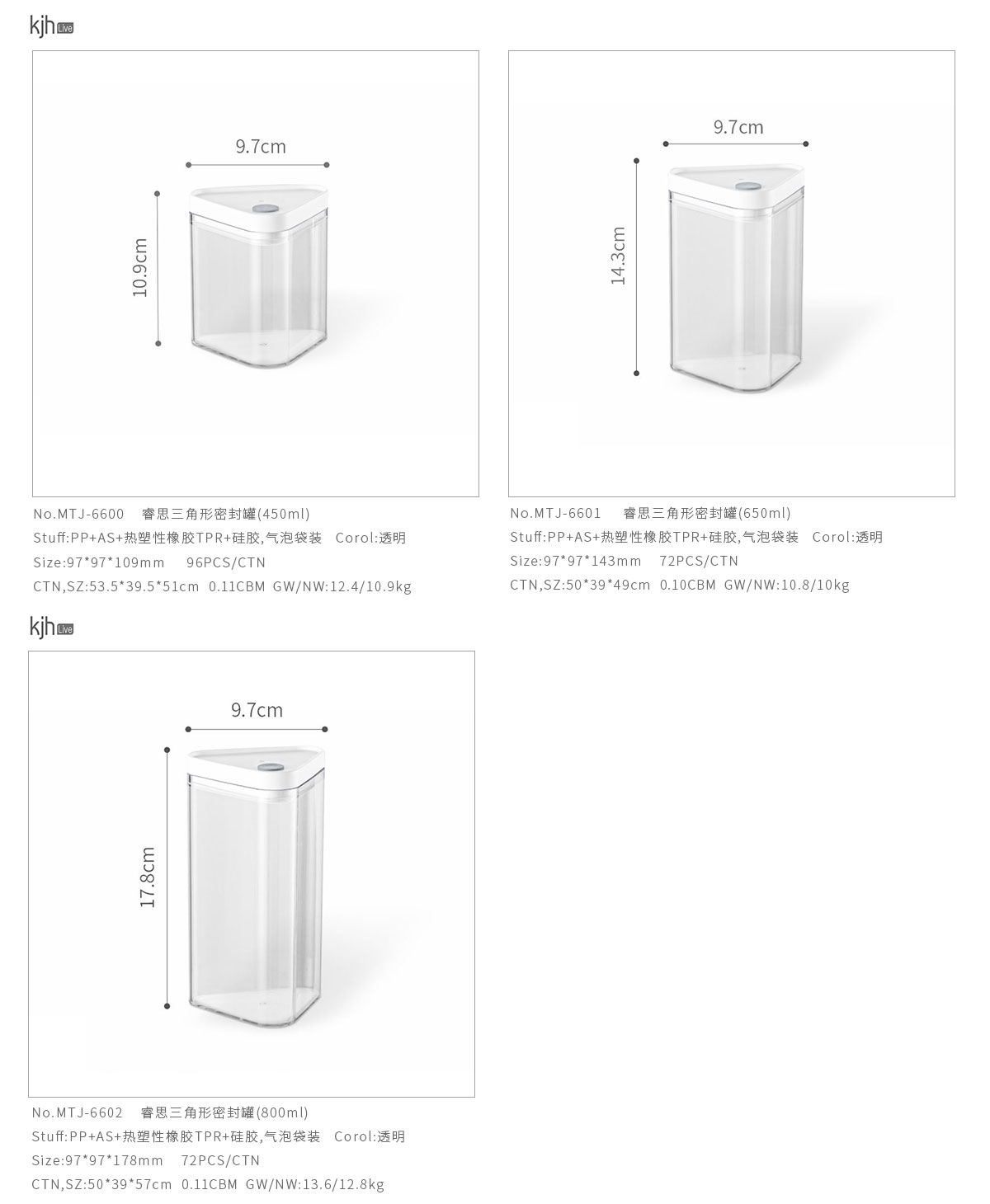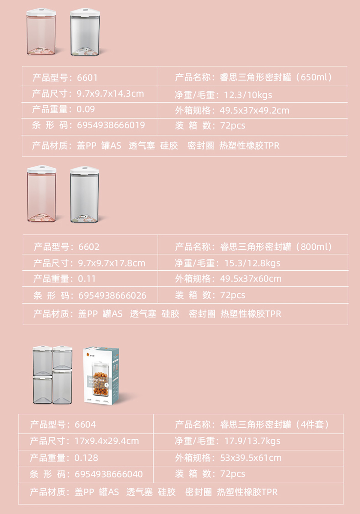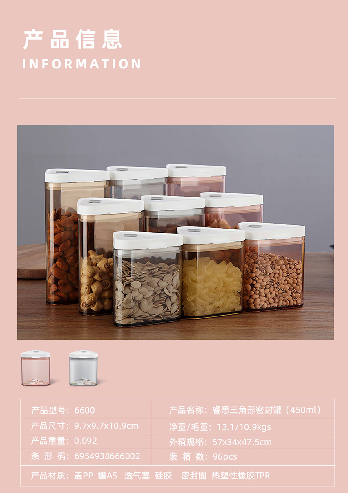 睿思三角形密封罐(450ml/650ml/800ml) 老色/新色