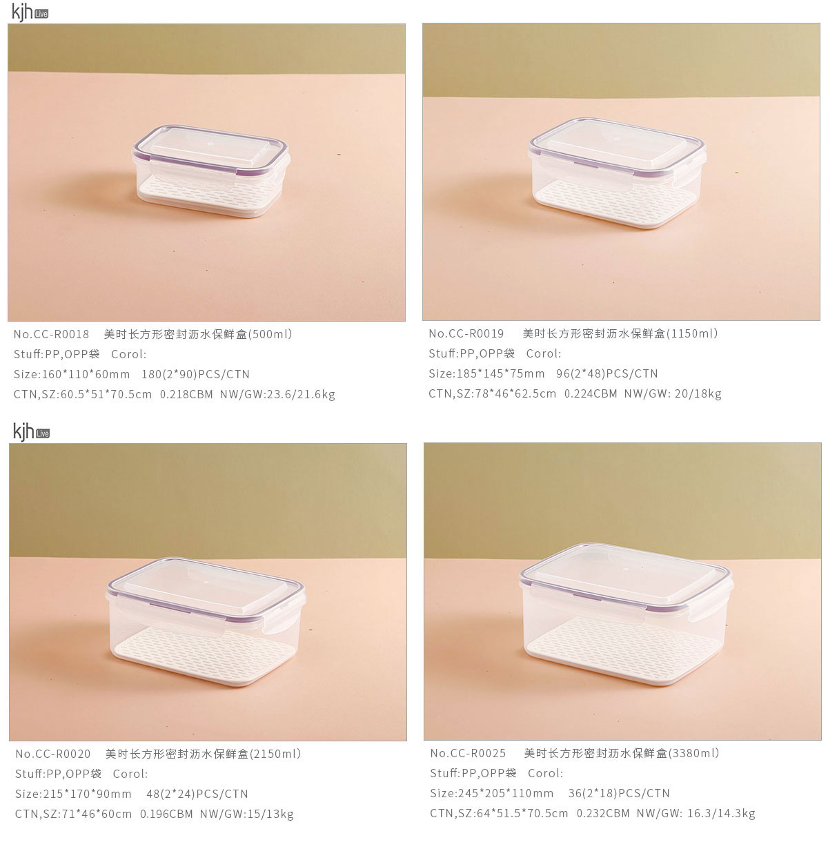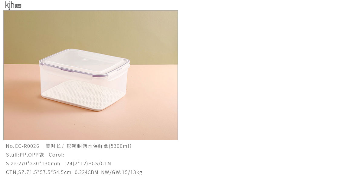 美時長方形密封瀝水保鮮盒(500ml/1150ml/2150ml/3380ml/5300ml)