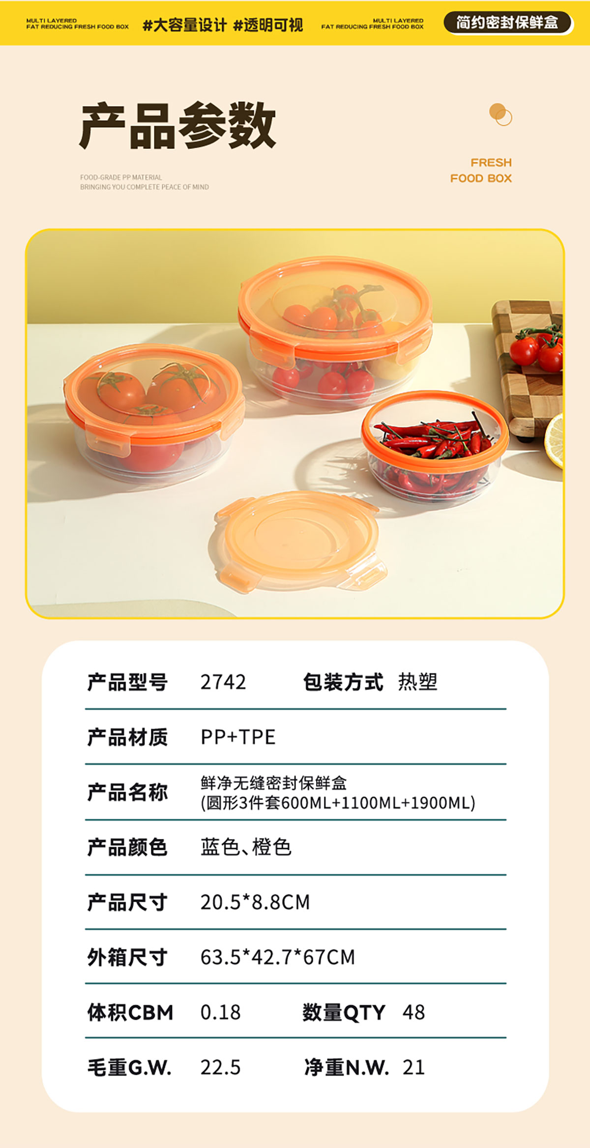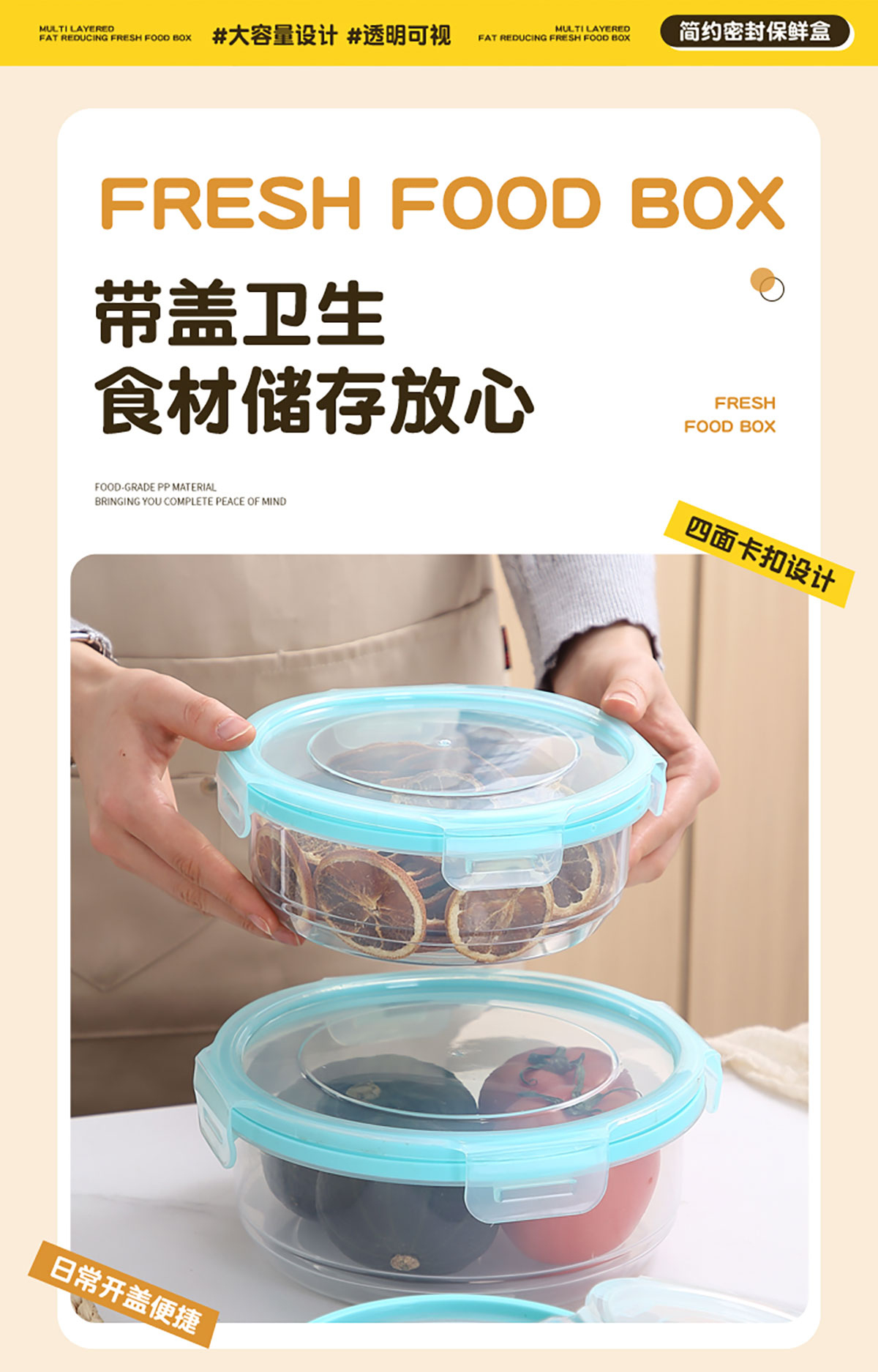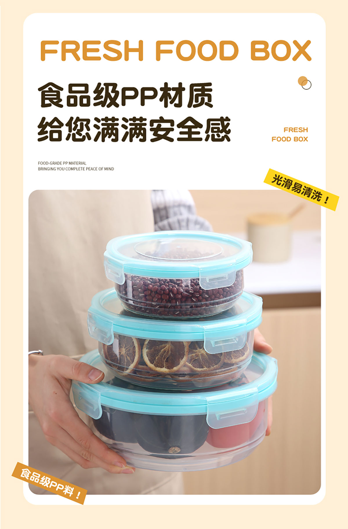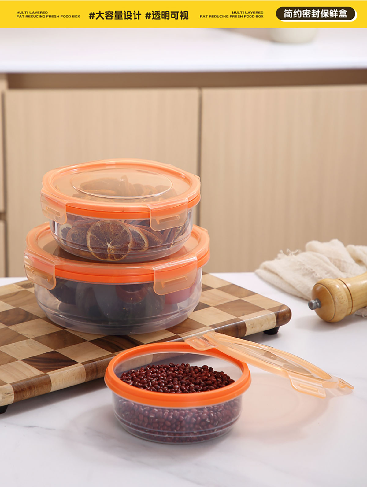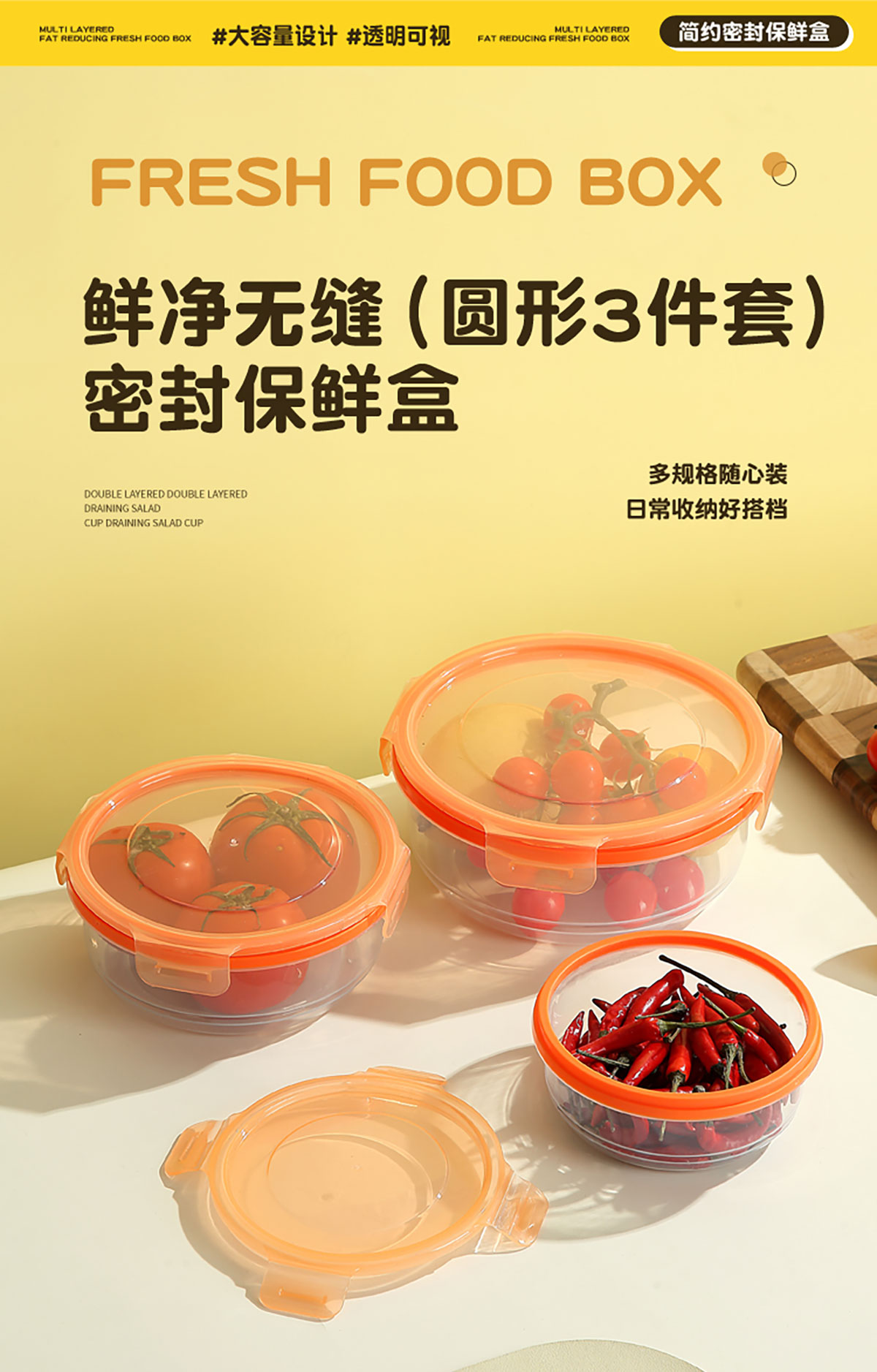 鮮凈無(wú)縫密封保鮮盒(圓形3件套600ml+1100ml+1900ml)