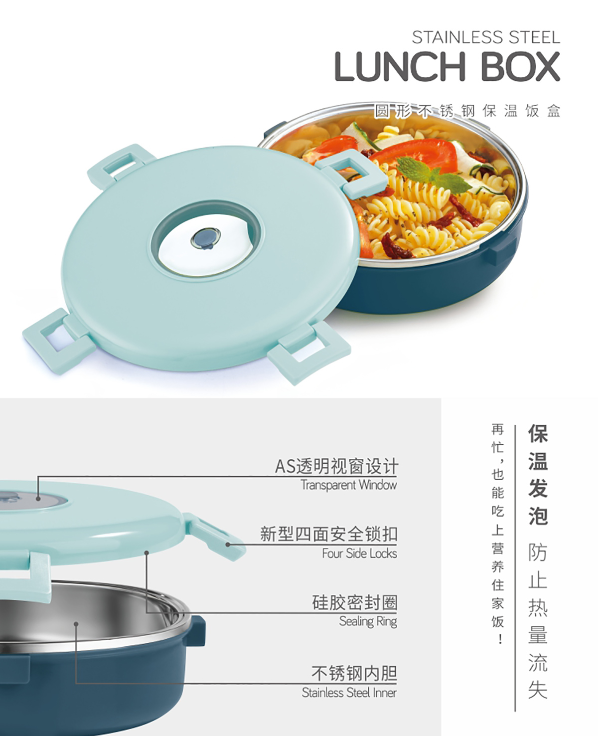 (特得美)圓形/圓形大號(hào)不銹鋼保溫飯盒(加大版6952)