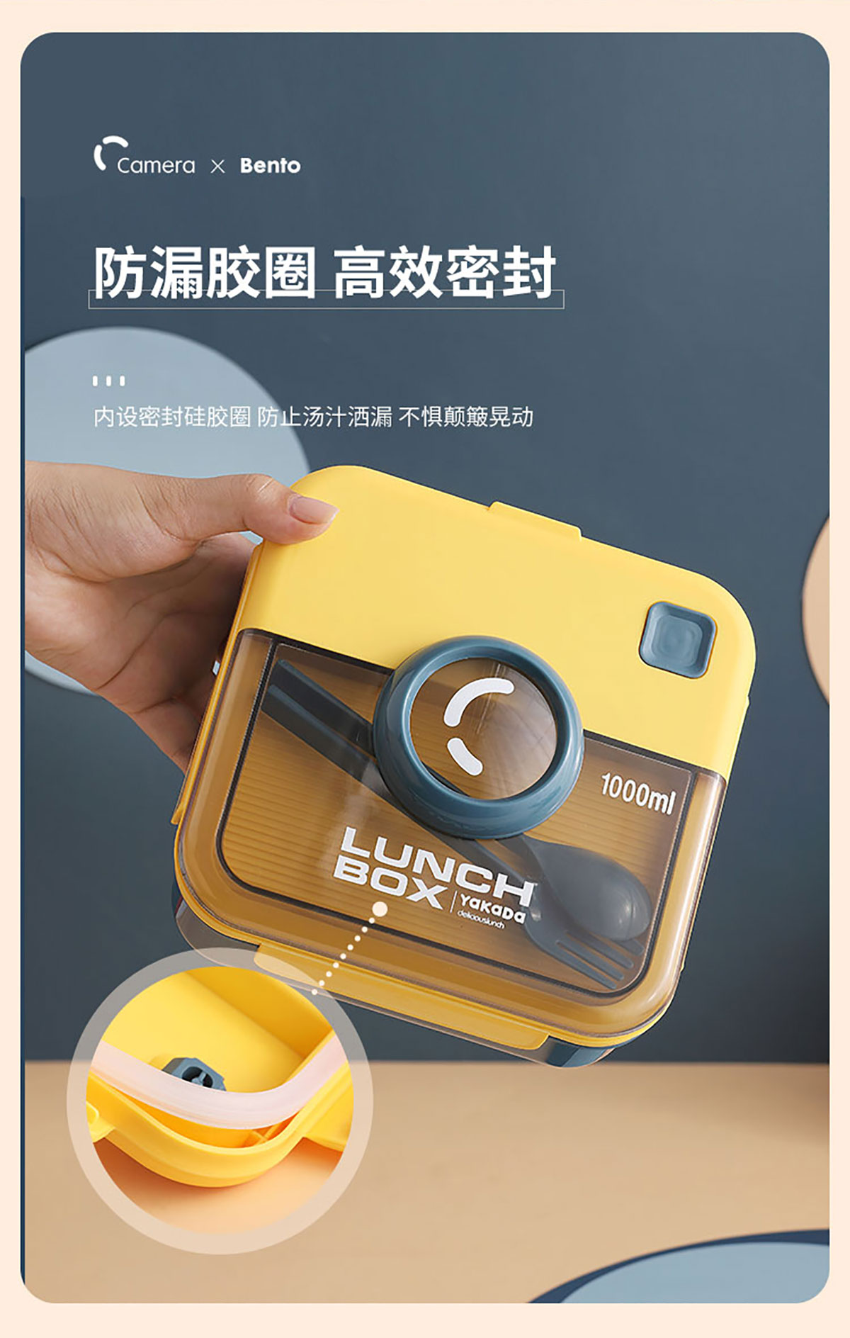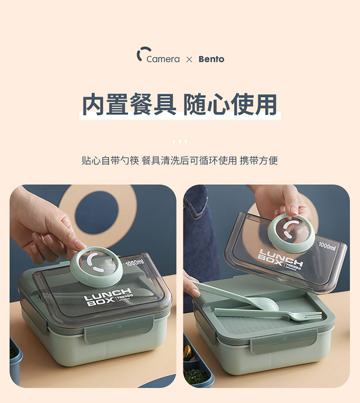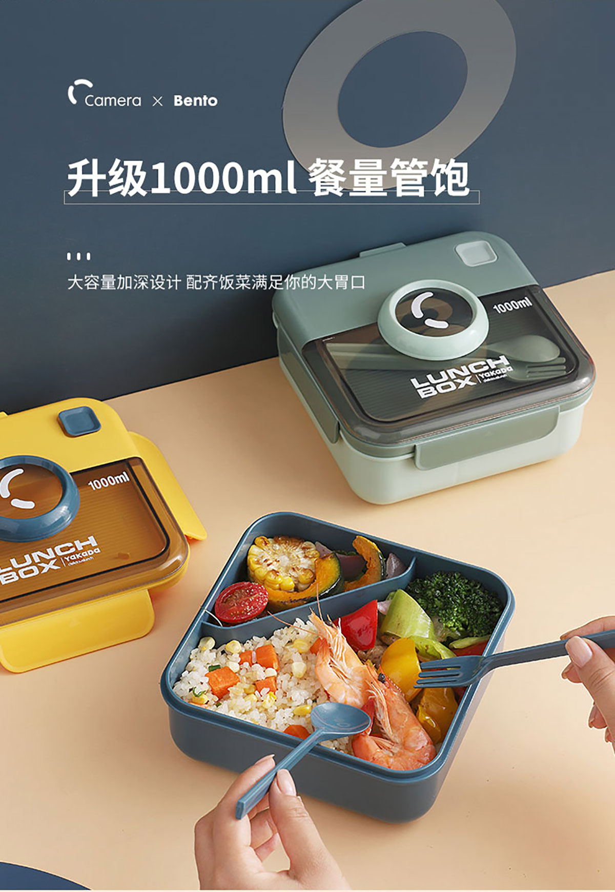 正方相機(jī)蓋飯盒1000ml
