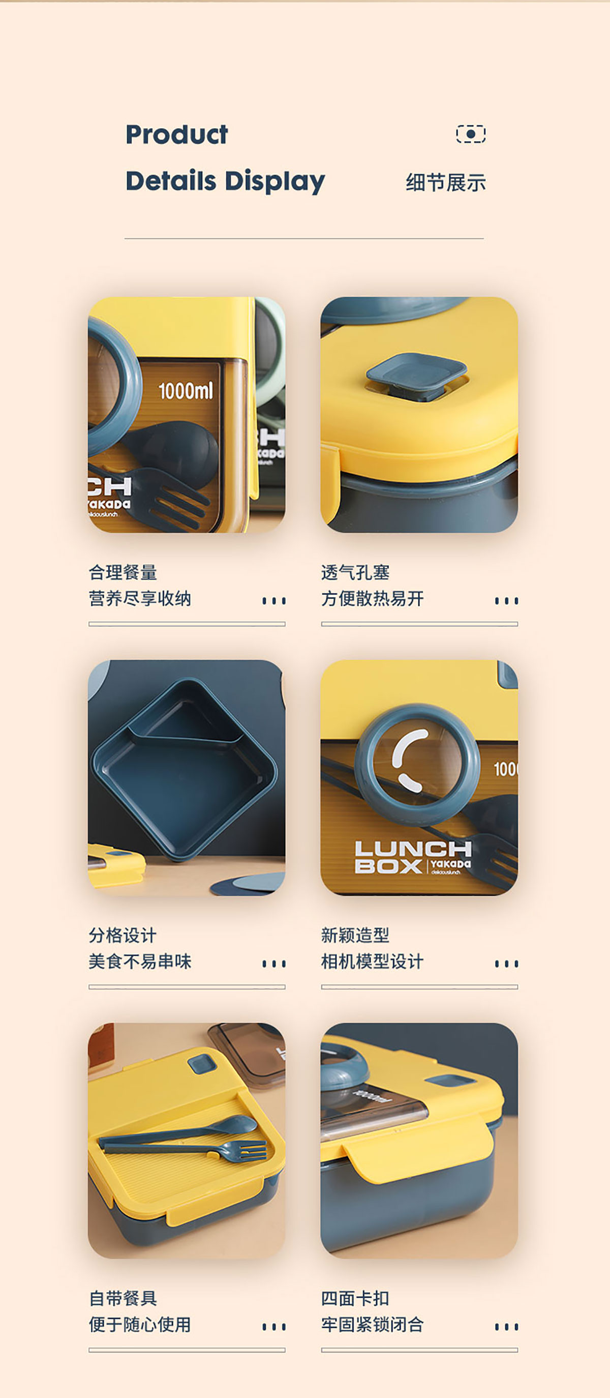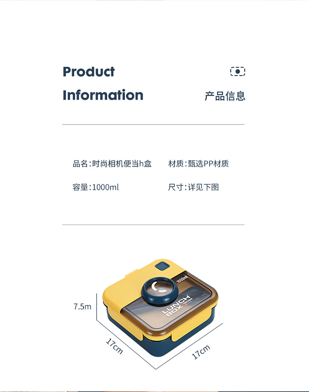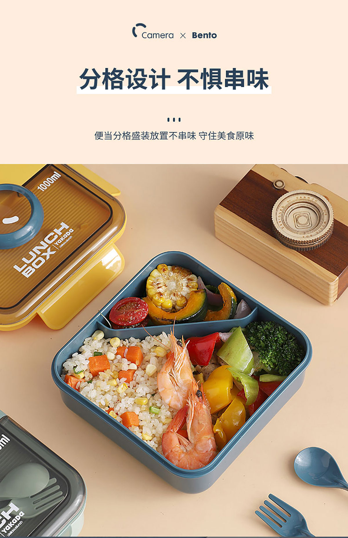 正方相機(jī)蓋飯盒1000ml