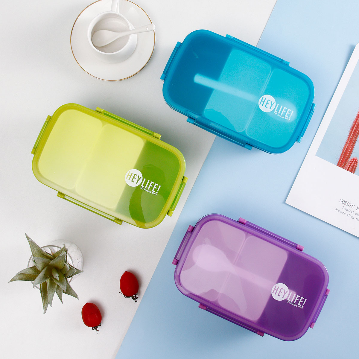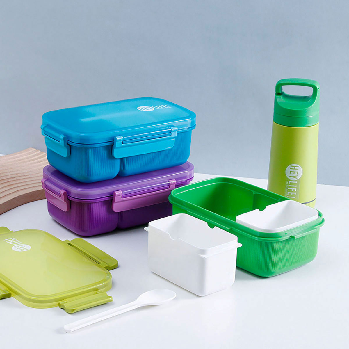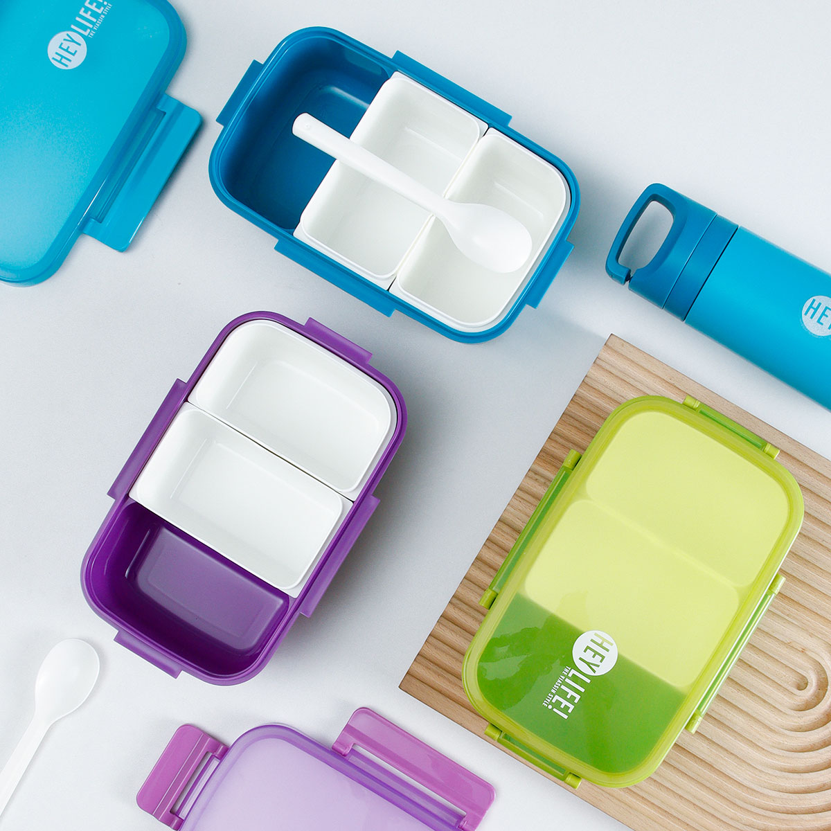 紋彩密封3格飯盒+水壺套裝(長方高款)