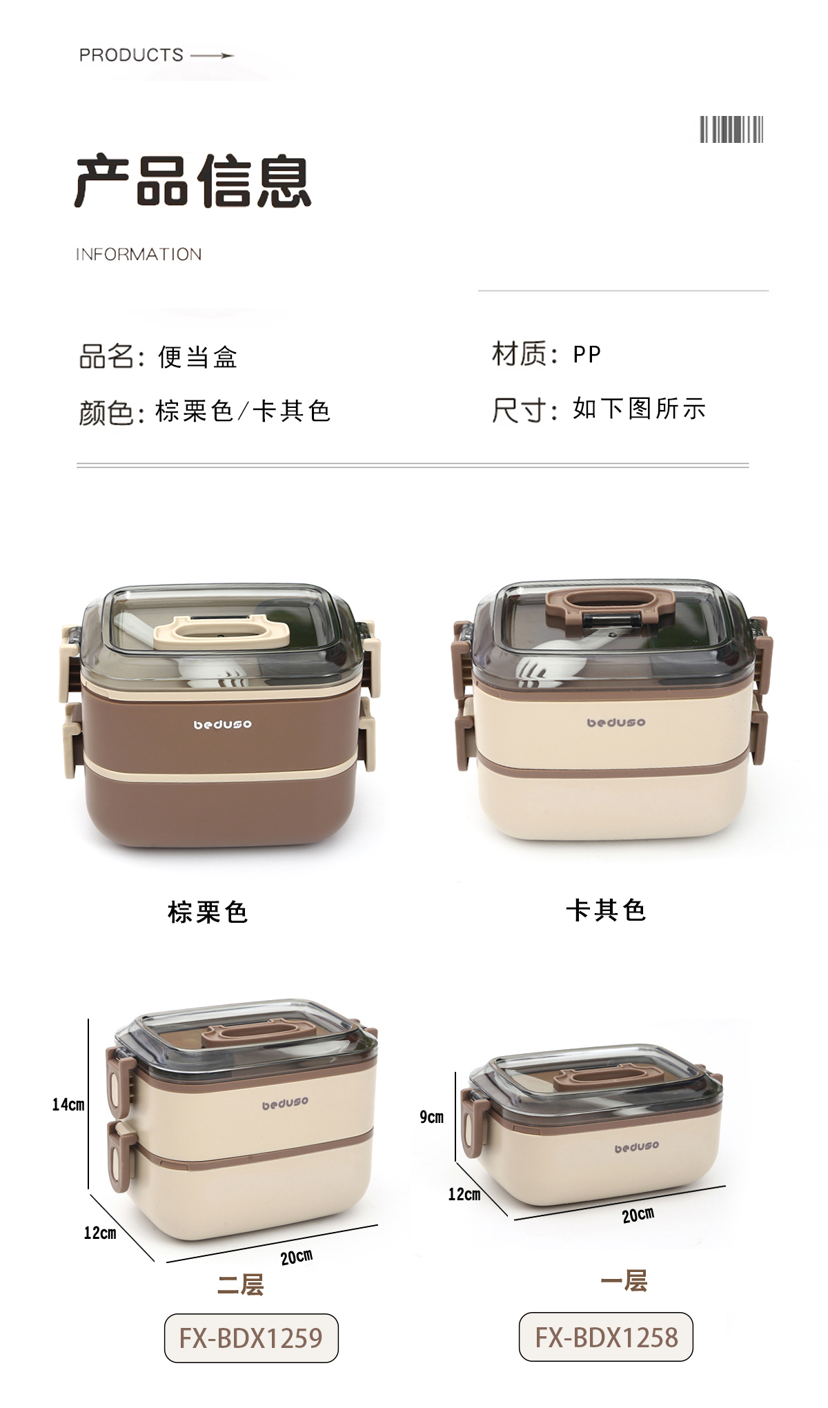 Size: FX-BDX1258(單層1000ml):200*120*90mm FX-BDX1259(雙層1800ml):200*120*140mm
