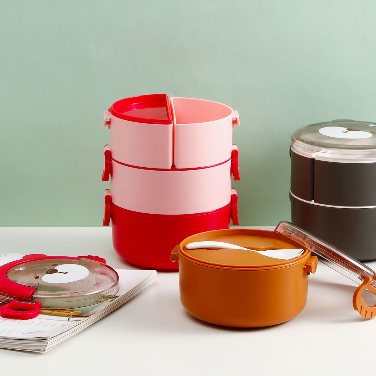樂(lè)味熊圓形單層/雙層/三層便當(dāng)盒(通格/分格)