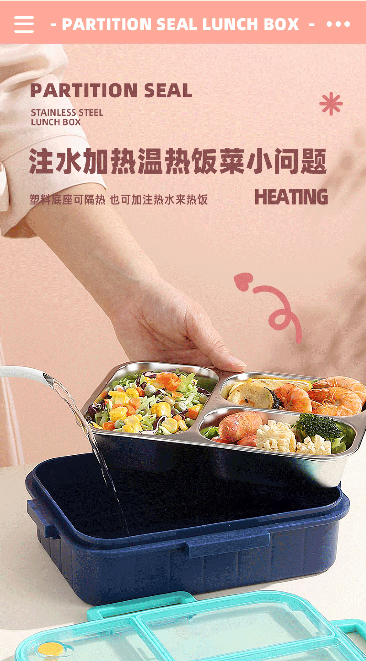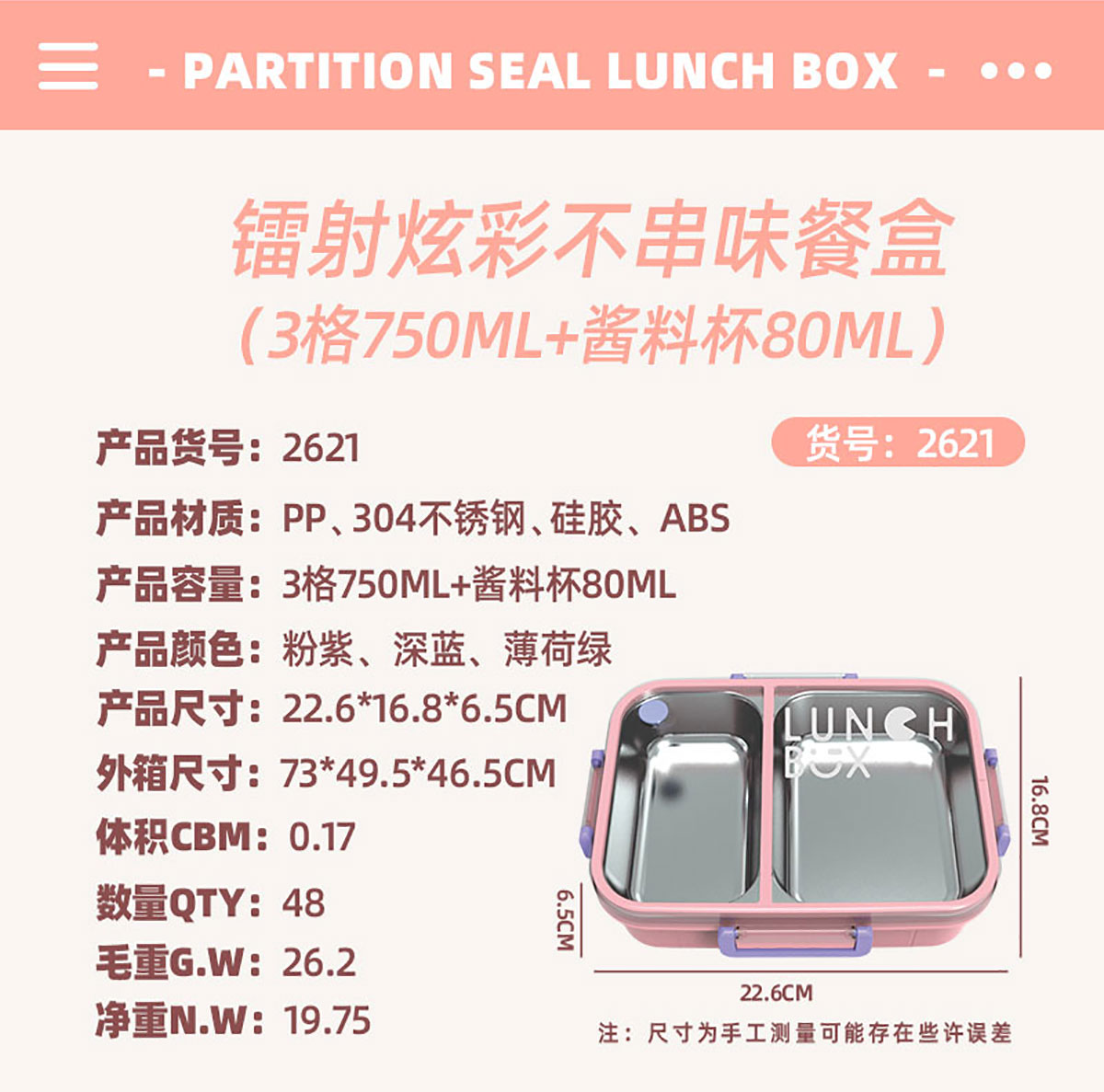 AQX-2621:226*168*65mm/不銹鋼3格750ml+醬料杯80ml