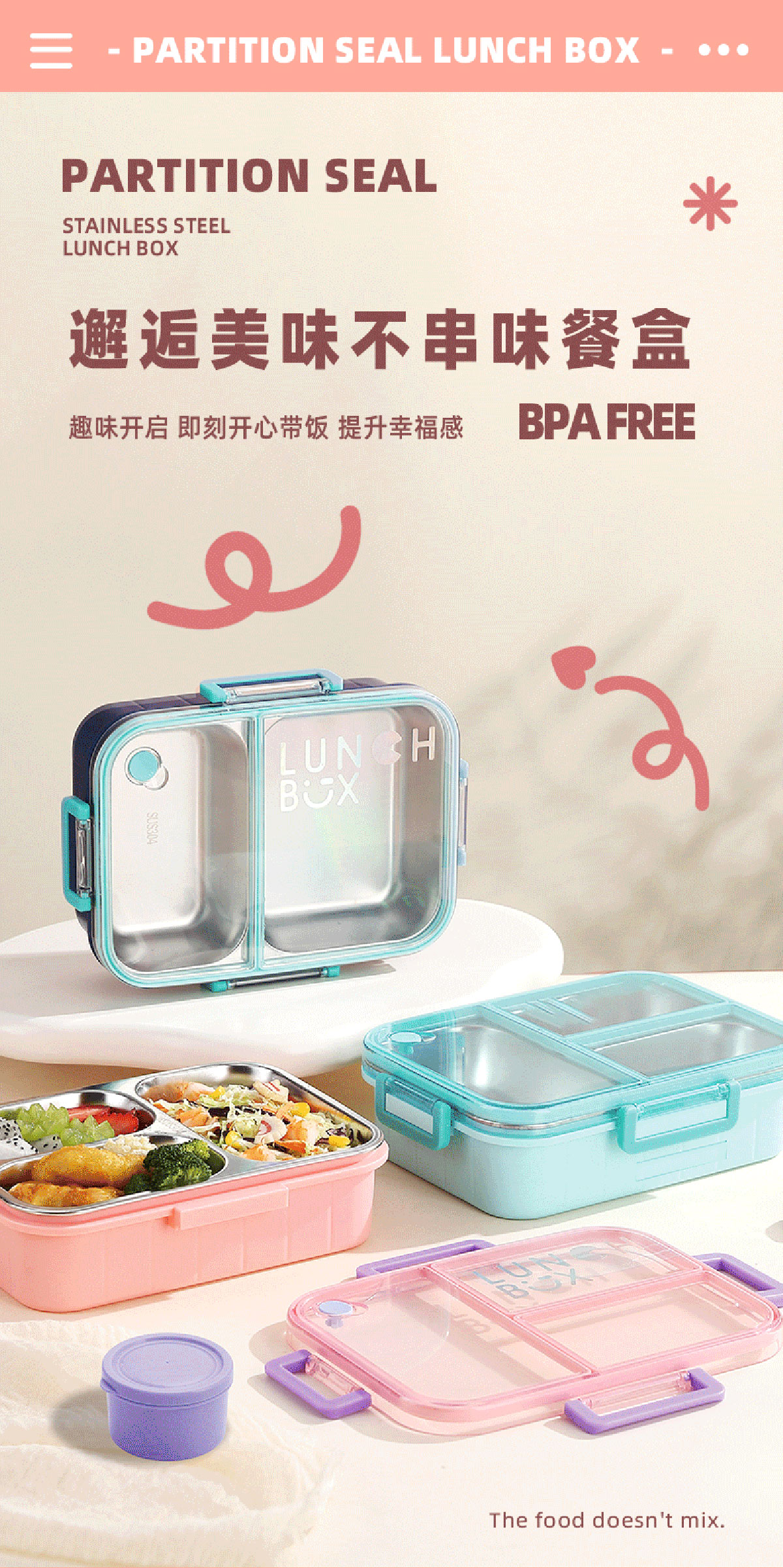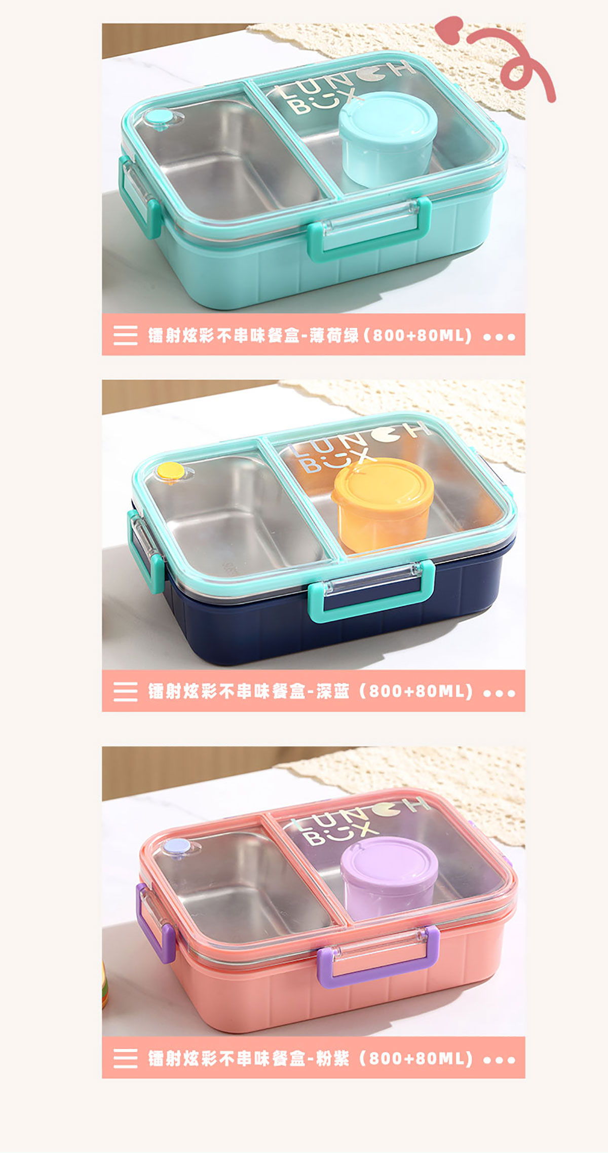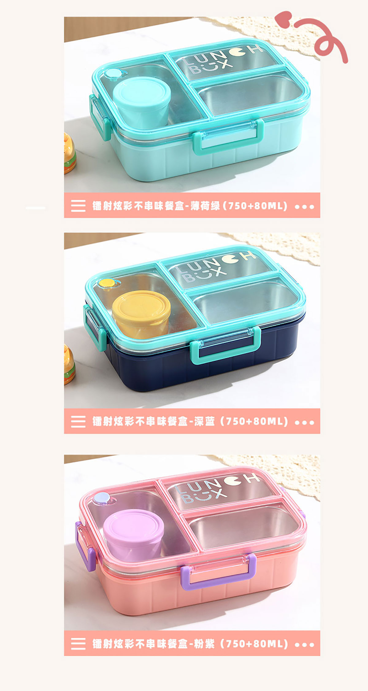 鐳射炫彩不串味餐盒(不銹鋼2格800ml/3格750ml+醬料杯80ml)