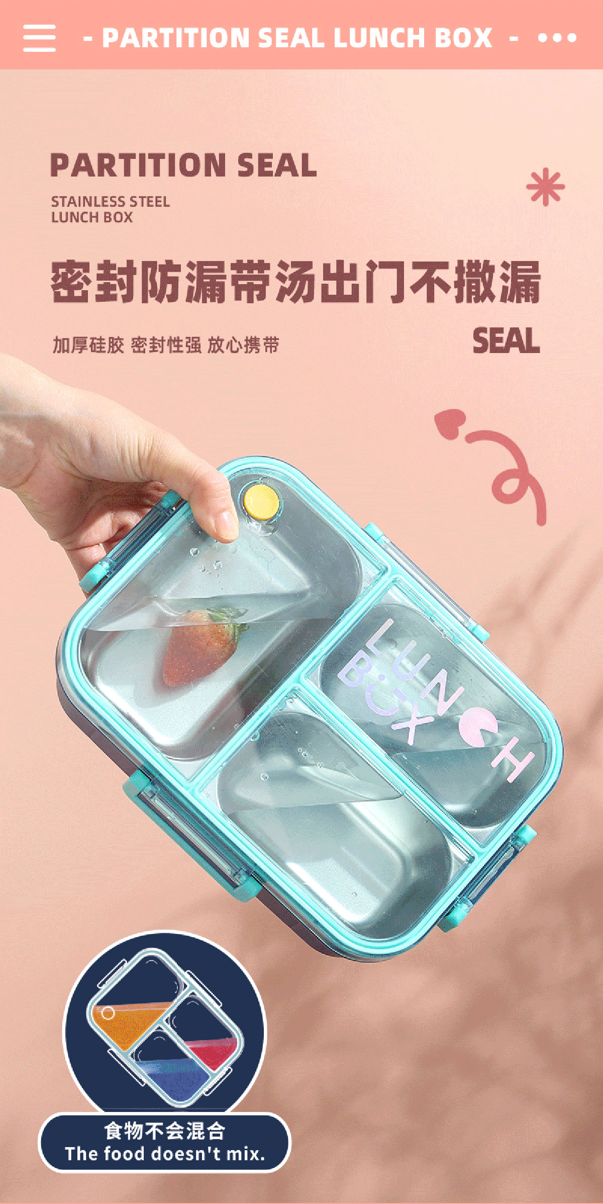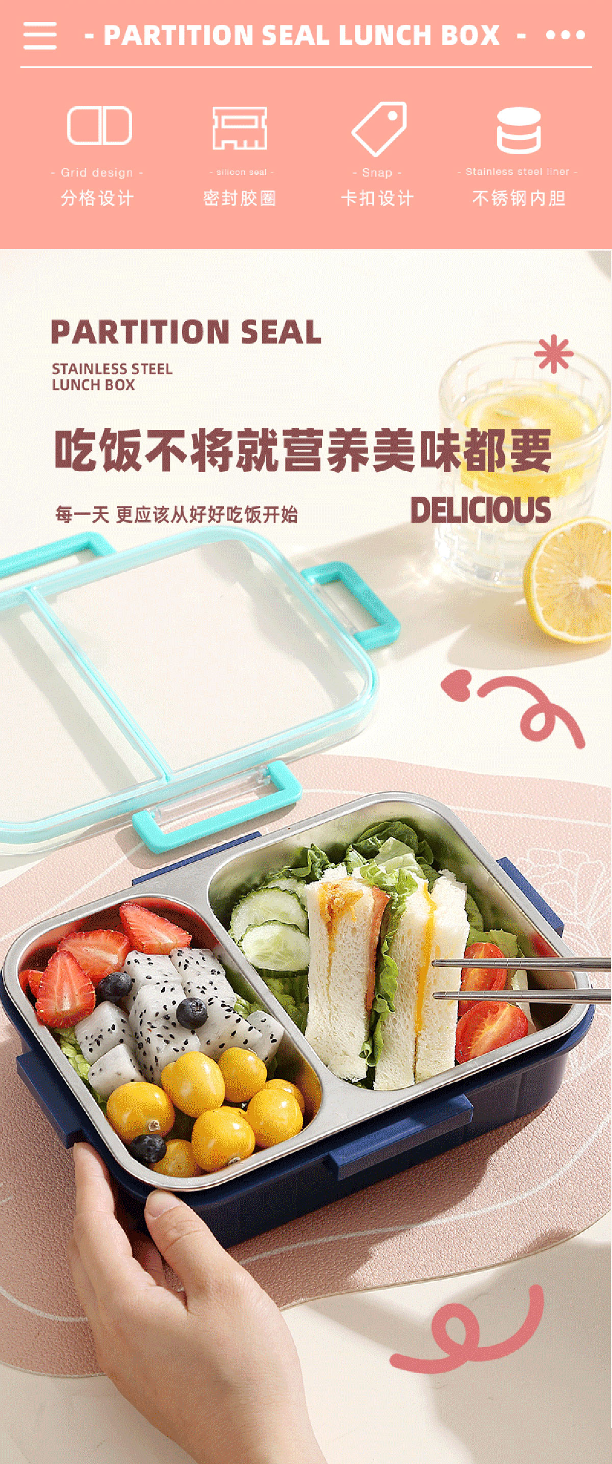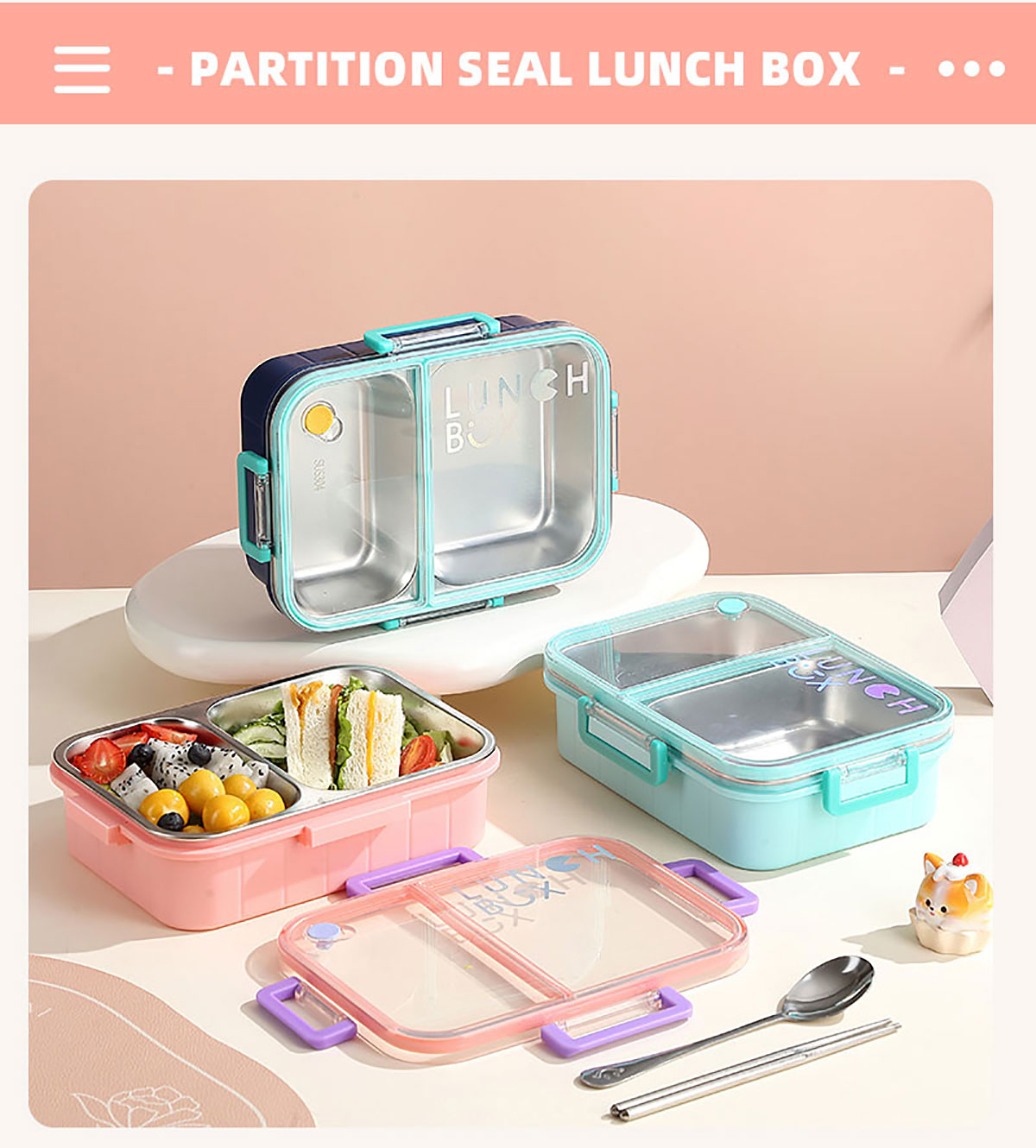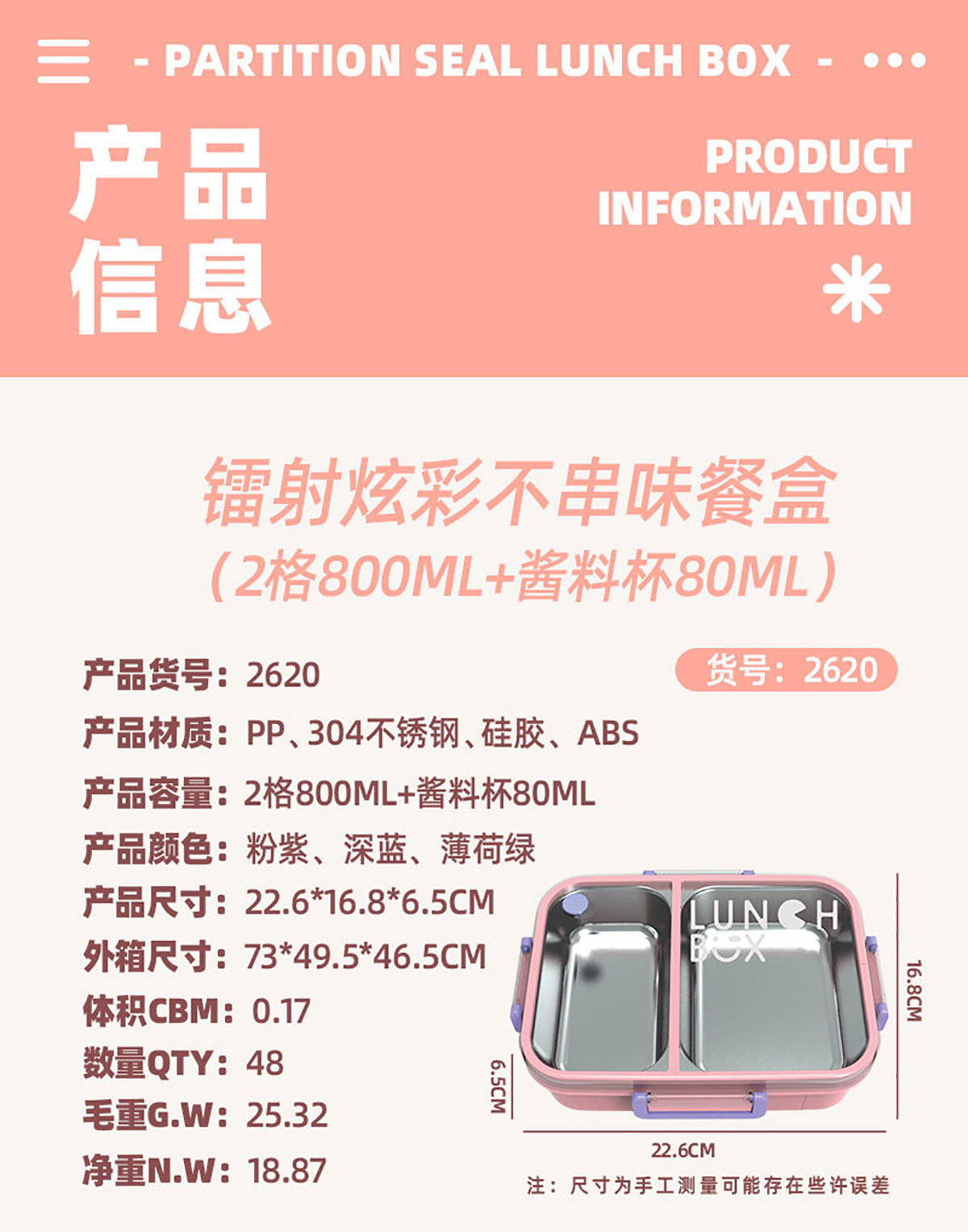 Size: AQX-2620:226*168*65mm/不銹鋼2格800ml+醬料杯80ml