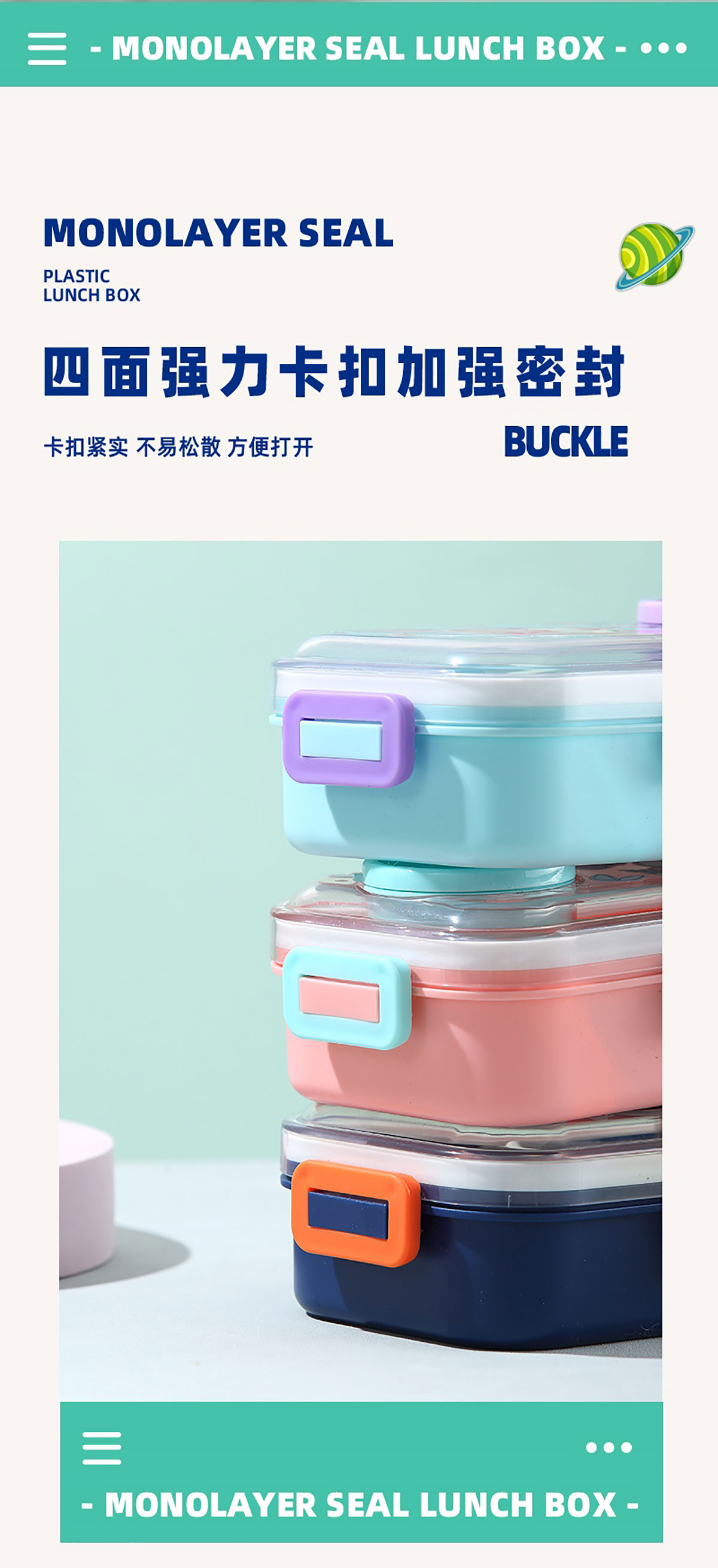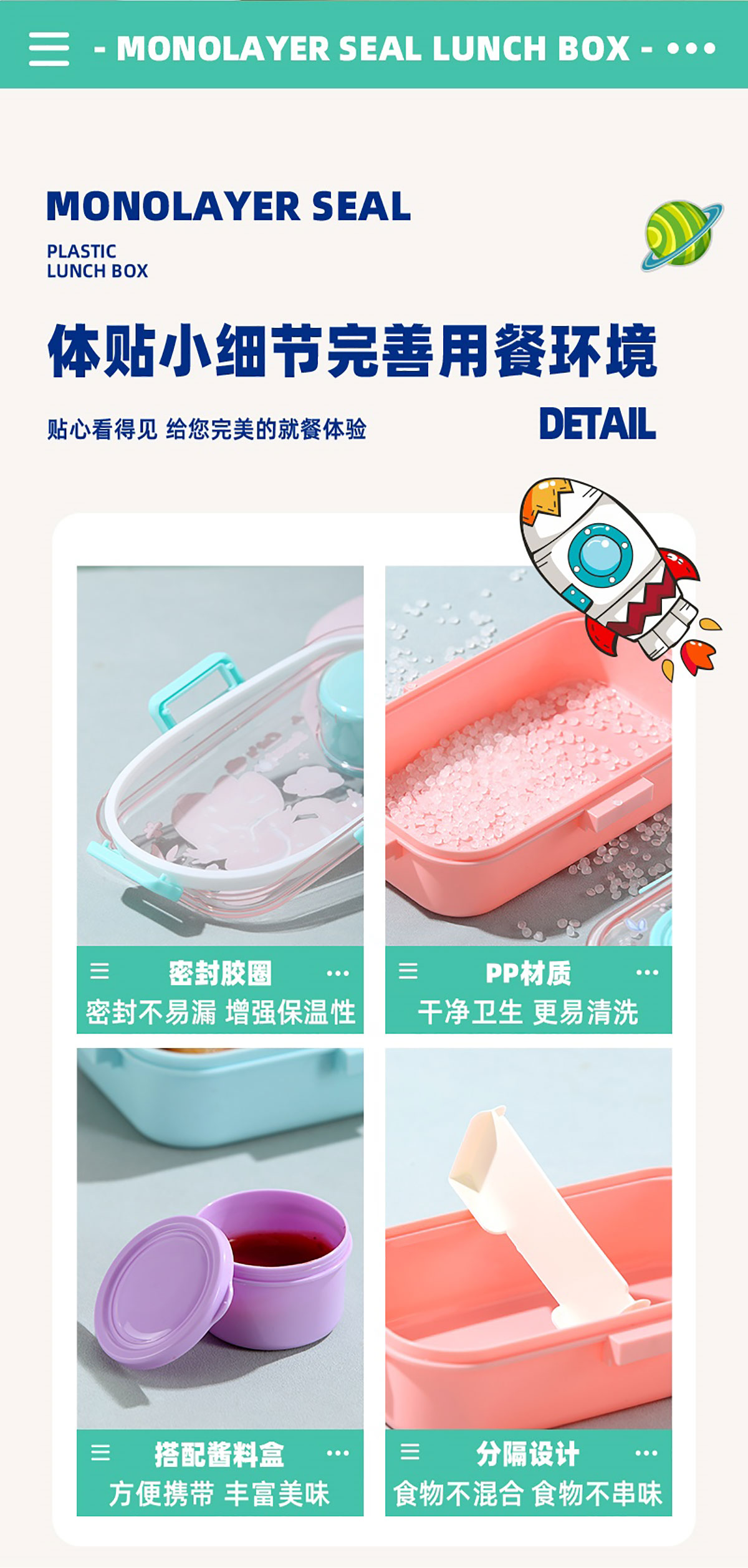 彩光卡通分格密封餐盒(700ml+外置醬料杯80ml+pp勺)