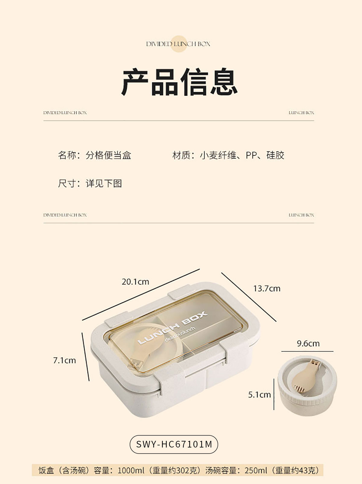 Size: SWY-HC67101M(三格):飯盒:201*137*71mm/1000ml 湯碗:Φ96*51mm/250ml