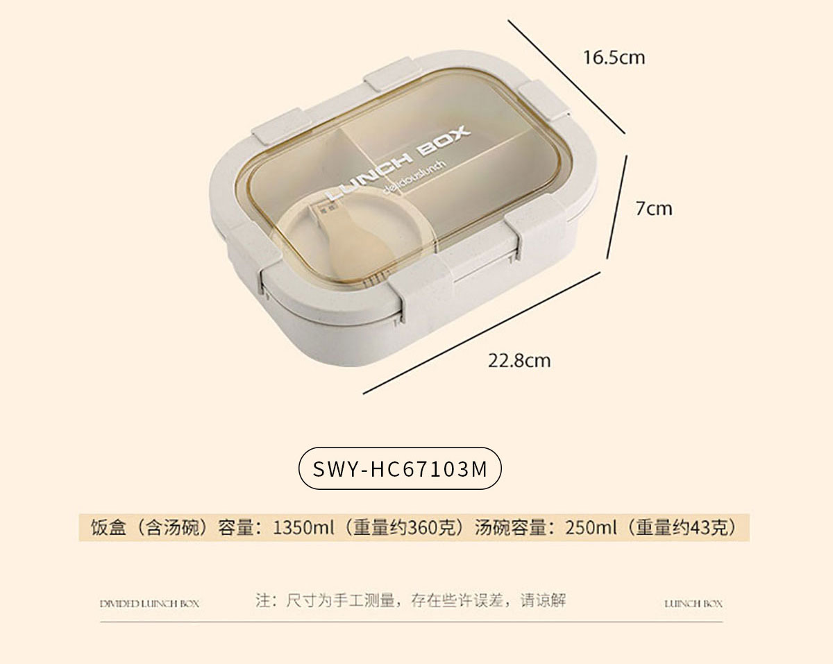SWY-HC67103M(四格):飯盒:228*165*70mm/1350ml 湯碗:Φ96*51mm/250ml
