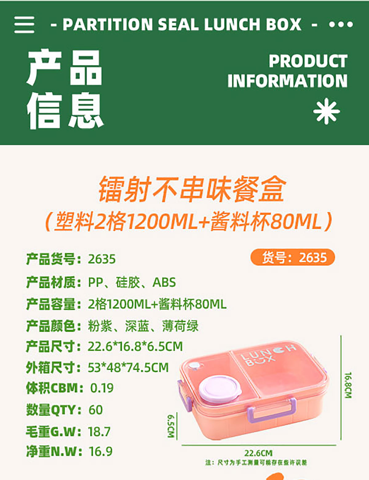 Size: AQX-2635(2格):226*168*65mm AQX-2636(3格):226*168*65mm