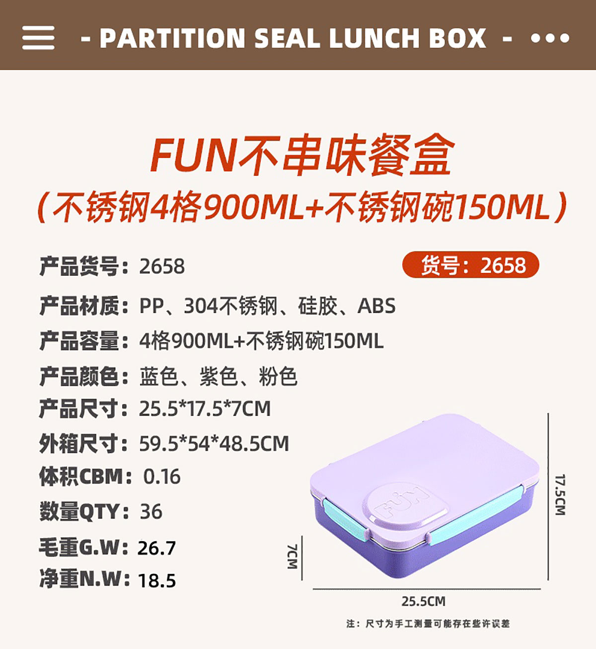 Size: AQX-2657:255*175*70mm+塑料碗150ml