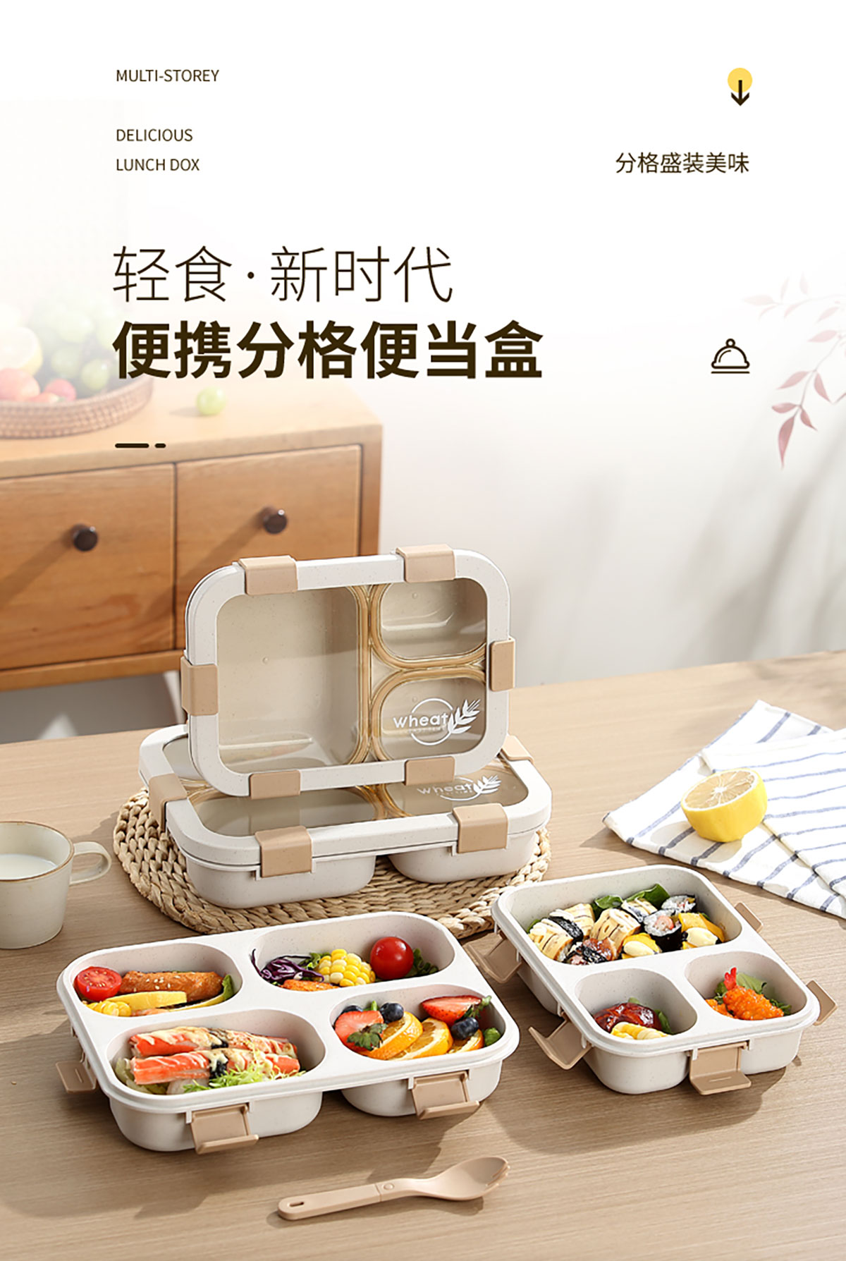 星樂小麥秸稈便當(dāng)盒(小麥三格/四格款)