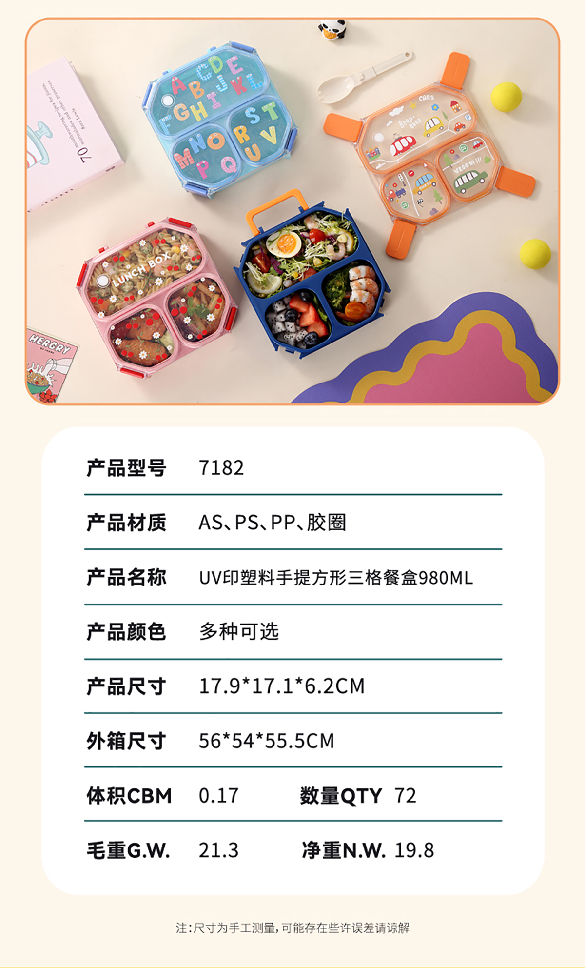 AQX-7182(三格):179*171*62mm/980ml