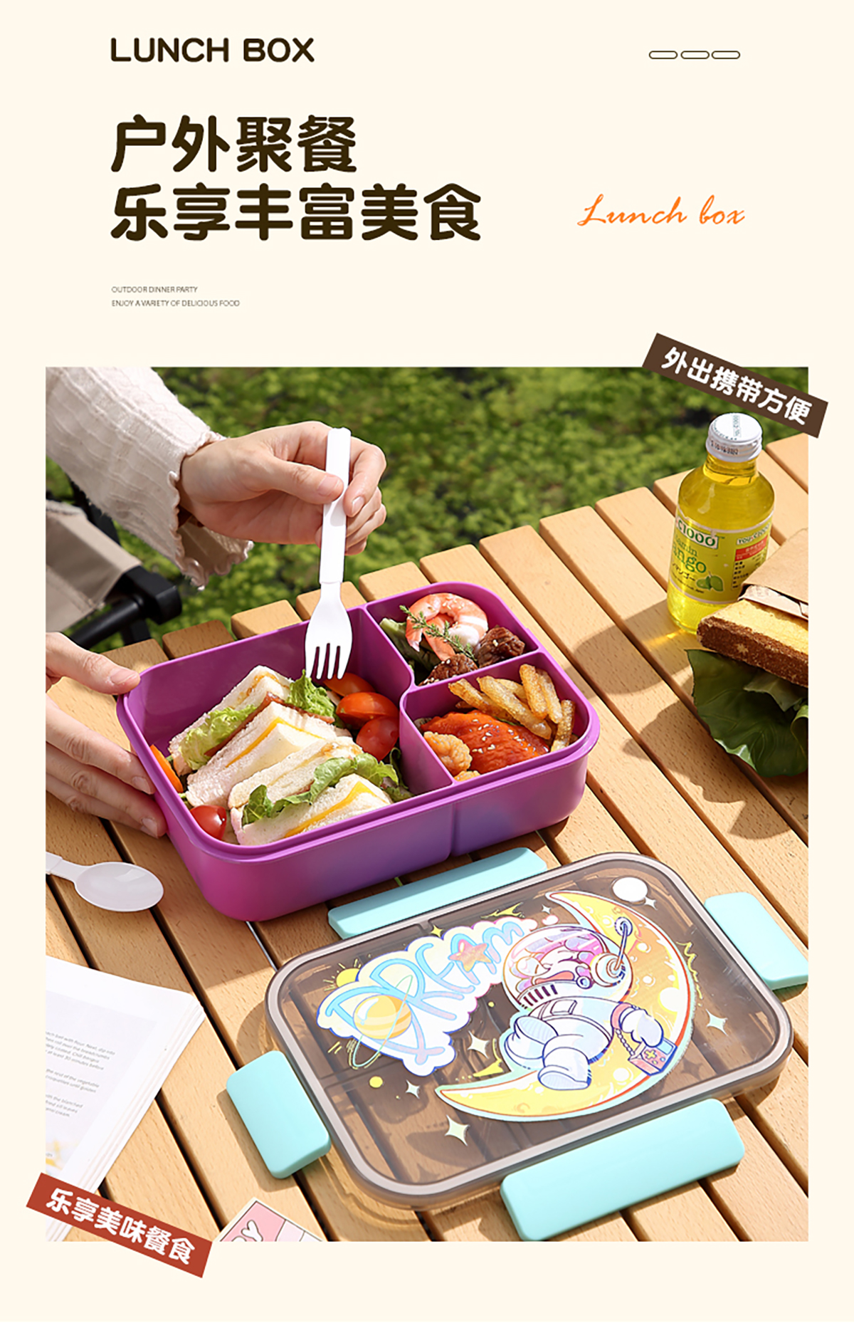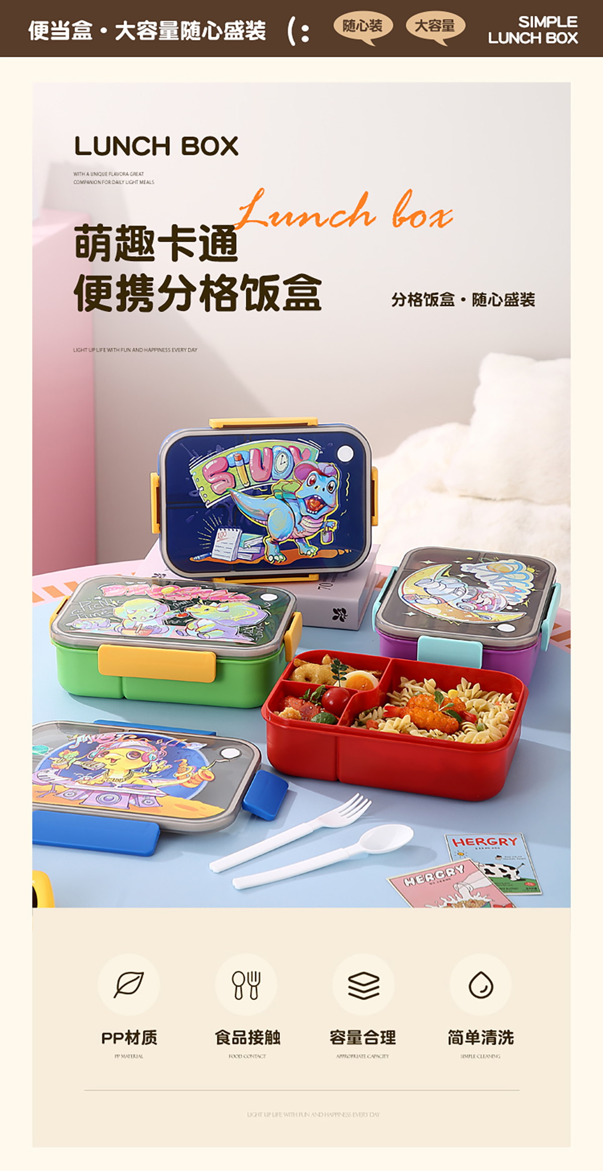 卡通透明蓋分格飯盒1450ml